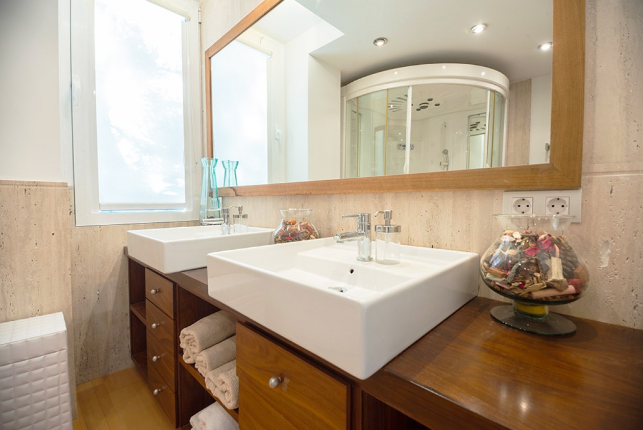 Wunderschönes Apartment in erster Meerseslinie in Illetas. Dieses fantastische Apartment befindet sich in erster Meereslinie in Illetas. Die Immobilie wurde komplett mit besten Materialien renoviert und bietet eine Wohnfläche von 119 m2 verteilt in zwei Schlafzimmer, zwei Badezimmer und ein geräumiges Wohn-/ Esszimmer mit zwei schönen Terrassen mit Meerblick. Es gibt Holzfußböden im ganzen Apartment und die Badezimmer sind mit Geräten von Marke Villeroy & Boch und Porcelanosa ausgestattet. Die Schlafzimmer bieten die Schränke von Marke Dara. Es gibt Klimaanlage, elektrischen Rolläden, regulierbaren Lichtschalter und Travetine Marmor in beide Badezimmer. Die Immobilie befindet sich in einer luxuriösen Anlage mit fantastischem Pool, großem Garten und direktem Meerzugang. Die Anlage ist überwacht 24h lang. Der berühmte Puerto Portals befindet sich in der Nähe, der Golfplatz von Bendinat ist nur vier Km, die Stadt Palma zehn Km entfernt. Es ist eine traumhafte Immobilie! Jederzeit stehen wir, für einen Besichtigungstermin für Sie bereit, Ihr SGI-Team Viele weitere attraktive Immobilien finden Sie auf www.sgi-mallorca.com