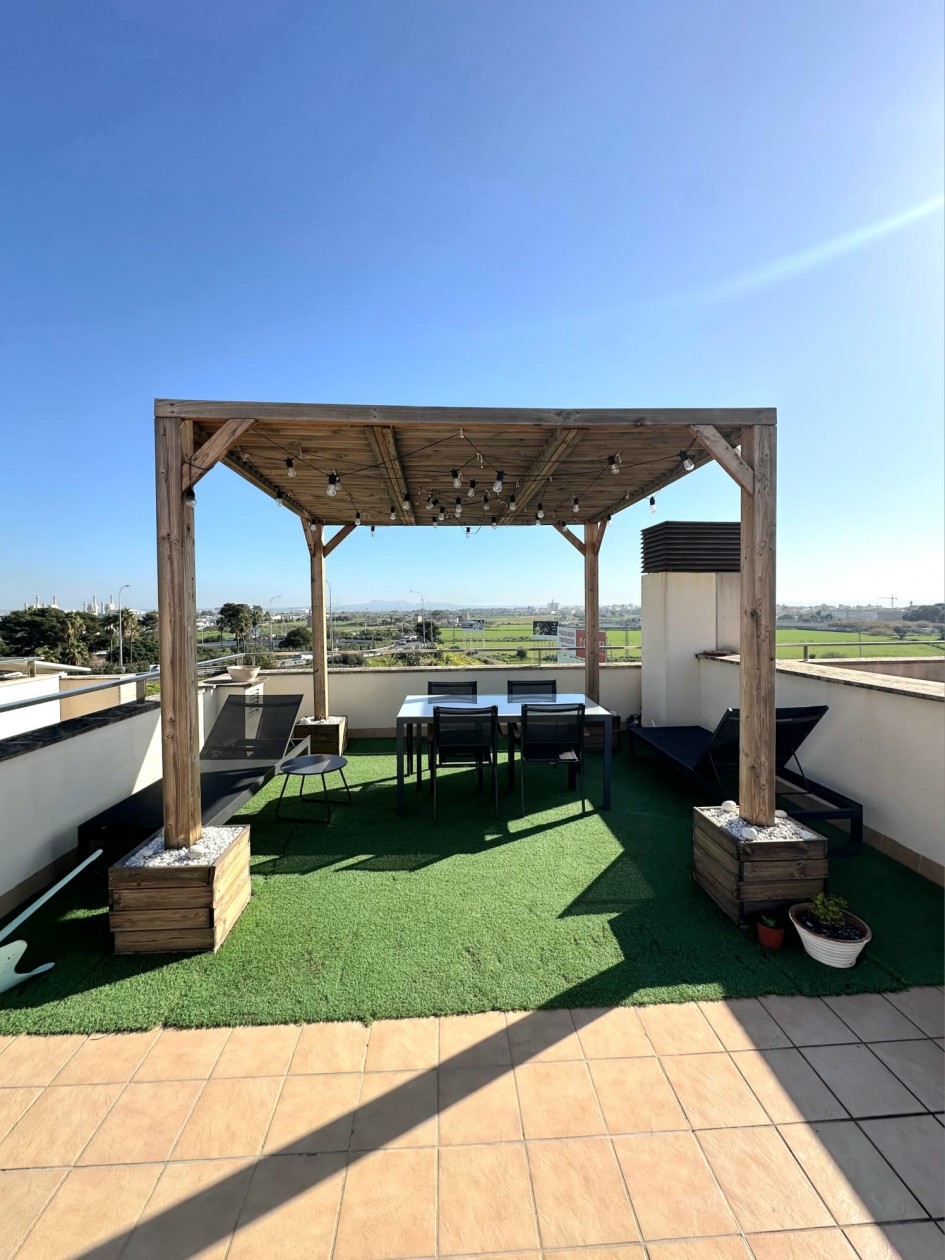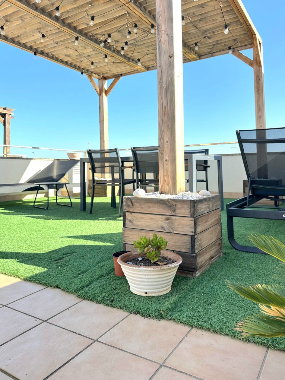 Penthouse zum Verkauf im Viertel Molinar, 5 Gehminuten vom Strand entfernt.Dies ist ein Haus mit zwei Schlafzimmern und Einbauschränken, zwei Badezimmern (eines davon en suite), einem Wohnzimmer und einer Küche mit offenem Grundriss, wodurch beide Räume ein großzügiges Raumgefühl vermitteln.Die komplett renovierte Küche verfügt über eine Osmoseanlage, sodass Sie Wasser direkt aus dem Wasserhahn trinken können. Es wird mit allen Geräten geliefert. Durch die Küche gelangt man in eine Waschküche, in der sich die Waschmaschine und viel Stauraum befinden. Außerdem verfügt es über eine 7,18 m² große Terrasse im Erdgeschoss, die von der Waschküche und dem Wohnzimmer aus zugänglich ist und auf der Sie wunderbare Sonnenaufgänge genießen können. Von dieser Terrasse aus gelangen Sie über eine bequeme Treppe auf das Dach, wo Sie einen 66 m² großen Raum mit unverbautem 360-Grad-Blick finden, in dem Sie Sommerabende bei Sonnenuntergang genießen können. Das Haus verfügt über zwei angeschlossene Parkplätze für zwei Autos und ein Motorrad sowie einen großen Abstellraum mit eingebauten Regalen. Der Zugang hierzu befindet sich für mehr Komfort neben der Tür, die zu den Wohnungen führt.Die Anlage verfügt über gepflegte Gemeinschaftsbereiche und Gärten sowie einen ganzjährig geöffneten Salzwasserpool.Die Gemeinde hat einen Wasserenthärter installiert, der dafür sorgt, dass jedes Haus kalkarmes Wasser erhält.Haus im Jahr 2020 renoviert.Das traditionelle Fischerviertel El Molinar bietet alle Arten von Annehmlichkeiten (Supermärkte, öffentliche Verkehrsmittel, ein Fitnessstudio mit Innenpool, Restaurants, Bars, Schulen, eine Bibliothek und Grünflächen), um dieses herrliche Zuhause zu einer großartigen Kombination zu machen.
