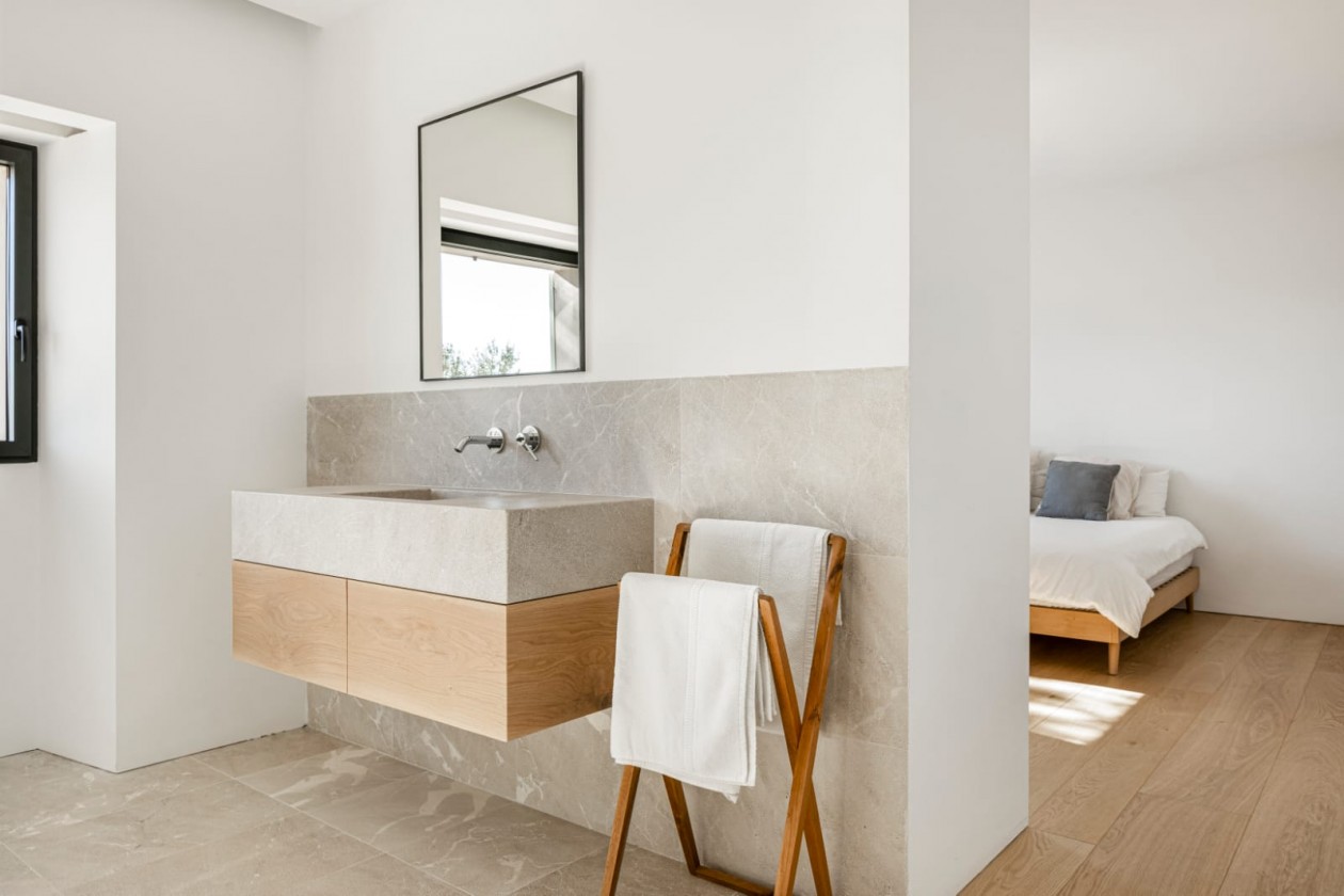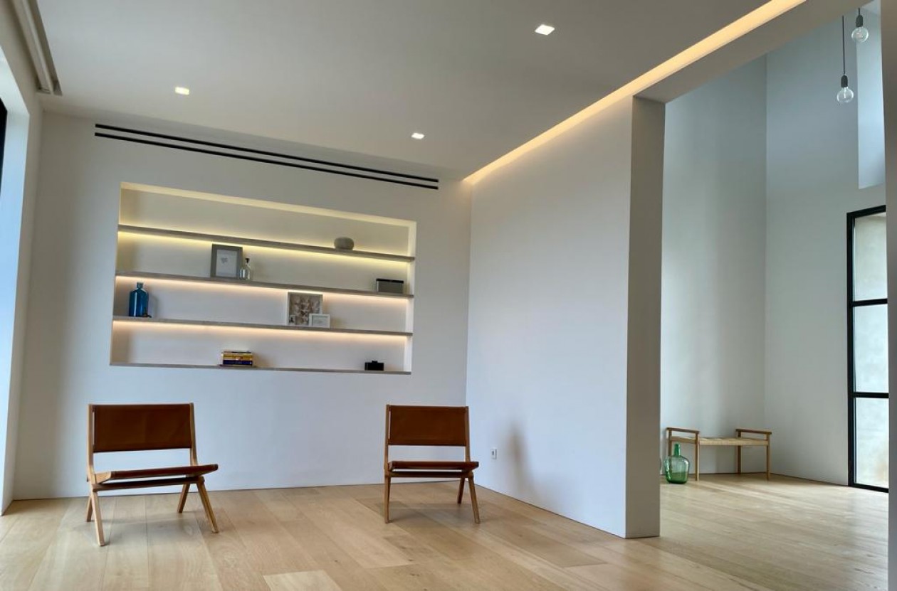 Mallorquinisches Manor haus im modernen Stil und mit hochwertiger Ausstattung zu verkaufen.Das Anwesen erstreckt sich über zwei Etagen. Das Erdgeschoss betritt man durch eine Holztür mit doppelt verglaster Eisentür, die zur doppelstöckigen Eingangshalle und der Treppe ins Obergeschoss führt. Im Erdgeschoss befindet sich das Wohnzimmer mit Kamin, von dem aus man in ein Arbeits- oder Bürozimmer gelangt. Außerdem gibt es ein Schlafzimmer mit eigenem Bad, ein WC, eine Küche mit großen Fenstern und Zugang zum Vorgarten, Pool und Grill. Außerdem gibt es eine Waschküche und eine Speisekammer.Im zweiten Stock finden wir einen großen Flur mit einem angelegten Glasfenster mit Blick auf die Berge, zwei großzügige Schlafzimmer mit eigenem Bad sowie das Hauptschlafzimmer mit eigenem Bad und großem Ankleidezimmer.Swimmingpool mit Pergola und Außenküche, Holzofen, WC und Abstellraum.Ausstattung: Einbauschränke, Fußbodenheizung, Klimaanlage, LED-Beleuchtung, Jalousien, hochwertiges Parkett, Naturstein in den Bädern, Solaranlage, separater Maschinenraum, Video-Gegensprechanlage, Ethernet-Verkabelung im gesamten Gebäude. 10 Minuten vom Zentrum Palmas entfernt, in der Nähe aller Annehmlichkeiten, ist es ideal für Familien oder Landliebhaber in einer ruhigen Gegend. Separate Bewässerung, 2.000 m² Orangenbäume mit hohem Ertrag.