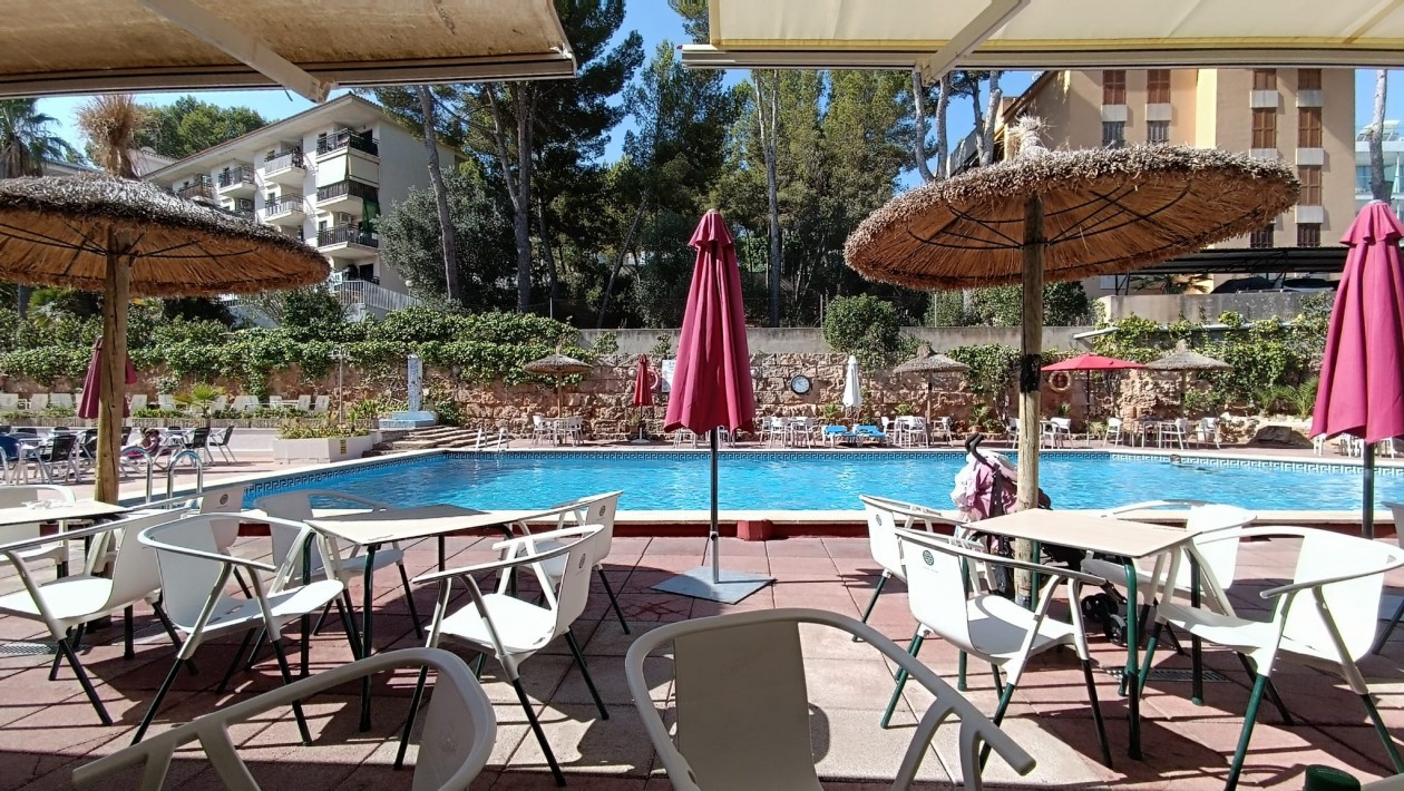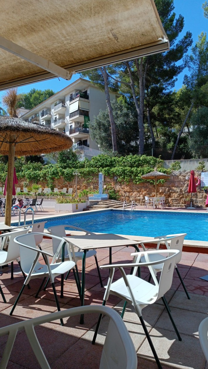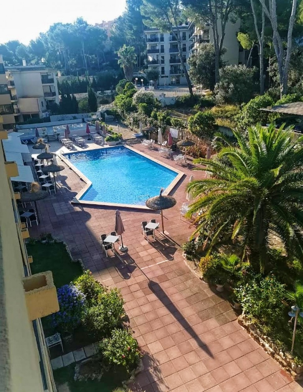 Sehr schönes und ansprechendes Studio mit seitlichem Meerblick in der beliebten Anlage Jardin de Luz mit Pool und Bar in Santa Ponsa. Die Anlage verfügt über einen wunderschön gepflegten Garten, einen Swimmingpool und einen Gemeinschaftsparkplatz. Die Lage ist sehr ruhig und dennoch nur 2 Minuten vom Strand und Zentrum von Santa Ponsa entfernt. Bushaltestelle, Taxistand, Bars, Restaurants und Geschäfte sind in wenigen Gehminuten erreichbar. Das Gebäude verfügt über zwei Aufzüge. Palma ist mit dem Auto in 15 Minuten und der Flughafen in 18 Minuten erreichbar. Gemeinschaftsgebühr: 1540 Euro/Jahr, inklusive Wasser, Strom, Gemeinschaftsreinigungsgebühr, Gärtner, Poolreinigung usw. Also etwa 130 Euro im Monat