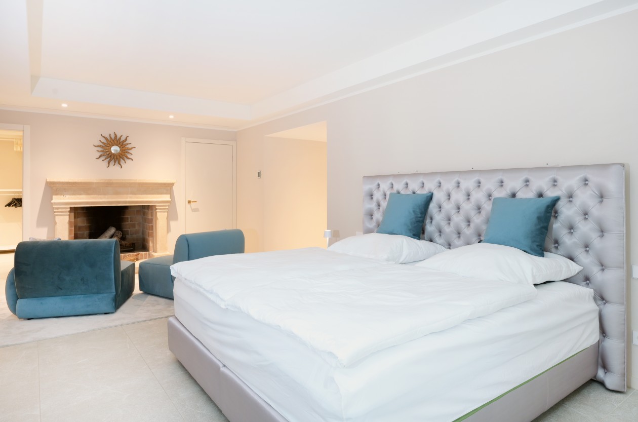 Luxus VillaDiese beeindruckende Immobilie befindet sich auf einem großen Hanggrundstück von ca. 2.425 qm oberhalb der Bucht von Santa Ponsa. Sie befindet sich in einer ruhigen und zentralen Wohngegend mit hervorragender Infrastruktur, Golfplätzen, Stränden und Yachthäfen im Südwesten. Der sensationelle Blick auf das Meer und die Küste, die unvergesslichen Sonnenuntergänge und die Privatsphäre machen dieses Objekt zu einem Juwel. Die Villa wurde 2018 kernsaniert mit einem grossen Anbau erweitert und verfügt über große und helle Räume, die sich über drei Etagen verteilen. Der Hauptwohnbereich auf der mittleren Etage besteht aus dem Wohn-Esszimmer mit offener Küche und Zugang zur fantastischen Pool-Terrasse mit überdachtem Essbereich und Lounge-Ecke, sowie einem großen Schlafzimmer mit Ankleideraum, einer Waschküche und einem Gäste-WC. Auf dieser Ebene befindet sich auch der Zugang zur Doppelgarage. Im Obergeschoss befindet sich ein Schlafzimmer mit Bad und Terrasse. Die untere Etage beherbergt einen Fitnessraum mit Sauna, Bad, ein Schlafzimmer mit Bad en suite, ein Gästeapartment mit unabhängigem Zugang mit zwei Schlafzimmern und vor Installation für eine Einbauküche. Ausstattung: Möbliert mit Designer- Möbel von Moreno Pisano aus feinsten Materialien . Master-Bad mit Geberit Dusch-WC, Dusche und Wanne Gäste WC mit Urinal und Waschbecken Offene, ausgestattete Küche . Bodenbelag aus Stein. Klima-Anlage im gesamten Haus. Kamin im Wohnbereich. Terrassen, Sauna und Gym . Swimmingpool . 4 Stellplätze, davon 2 in der Garage und Stellplätze im Freien. Aufteilung: 4 Schlafzimmer 1 Büro 6 Bäder 2 Ankleide 1 Gäste WC 40 qm Pool