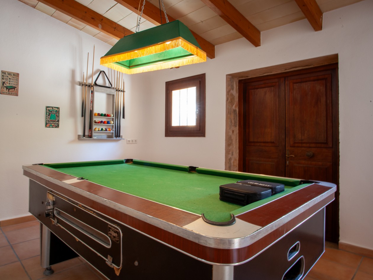 Finca mit Ferienvermietungslizenz, Gästeapartment, Pool & 25.000 m2 Grundstück – Natur pur & viel PotenzialDiese charmante Naturfinca bietet alles, was das Herz begehrt: absolute Ruhe, viel Platz, moderne Ausstattung und eine gültige Lizenz zur Ferienvermietung – ideal für Eigennutzung mit Einkommenspotenzial oder als renditestarke Investition. Auf einem weitläufigen Grundstück von 25.000 m2 liegt die ca. 300 m2 große Hauptfinca, liebevoll gepflegt und ausgestattet mit: • Lichtdurchfluteten Wohnbereichen • Einem eigenen Billardzimmer. • Einer offenen Terrasse von ca. 80 m2 mit Außenküche und Barbecue-Bereich – perfekt für gesellige Stunden im Freien.Das separate Gästeapartment (ca. 75 m2 ) ist ideal für die lizenzierte Ferienvermietung, mit eigenem Zugang, Privatsphäre und charmantem Ambiente. Freizeit, Natur & Ausstattung auf einen Blick: • Großer Poolbereich. • Großes Gartenschachfeld & Basketballplatz. • Pferdestall – ideal für Tierhaltung oder Hobbyreiter • Naturbelassene Wiesen, Spazierwege & alte Bäume • Steinbruch mit Gestaltungspotenzial. • 80 m2 großes Magazin, vielseitig nutzbar als Lager, Hobbyraum oder für einen Umbau nach Wunsch. • Strom- und Wasseranschluss vorhanden.Energie & Nachhaltigkeit:Die Finca ist autark versorgt durch Solarenergie und eine Zentral-Gasheizung mit eigenem Gastank – eine ideale Kombination für nachhaltiges und unabhängiges Wohnen.Fazit:Ein einzigartiges Anwesen mit viel Charme, Natur, Ruhe – und Dank Ferienvermietungslizenz auch mit echtem Potenzial zur Einnahmengenerierung. Perfekt für Menschen, die das mediterrane Leben mit Freiheit und Möglichkeiten kombinieren möchten.