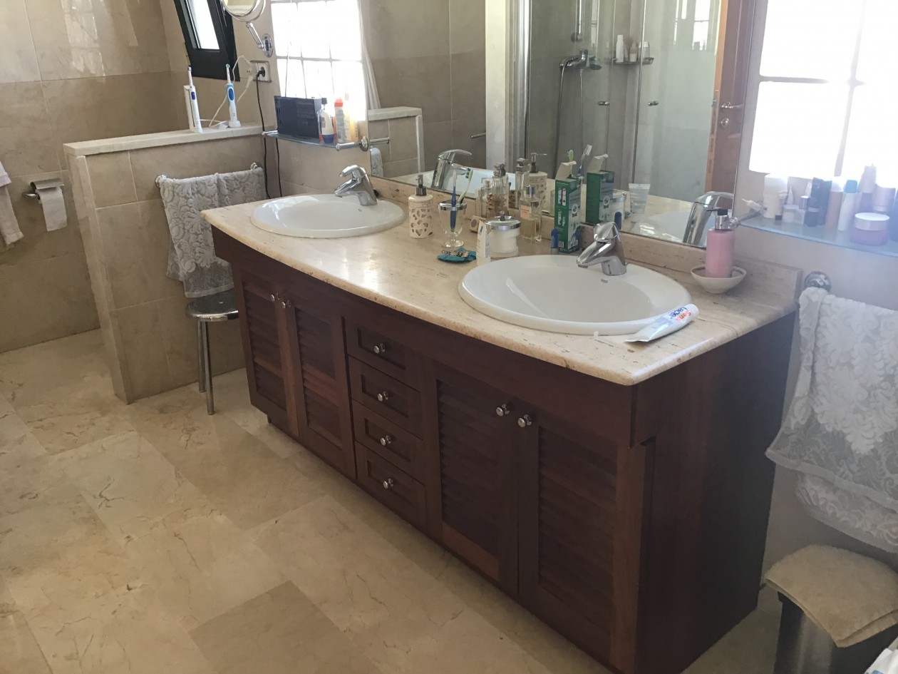 Wir bieten dieses fabelhafte Einfamilienhaus mit privatem Pool zum Verkauf an. Es ist auf die 3 Etagen verteilt. Im Erdgeschoss finden wir ein großes Wohnzimmer mit Kamin, amerikanische Küche, Vorraum und Toilette. Im ersten Stock haben wir 4 Doppelzimmer, 3 Badezimmer (1 en suite) und ein Ankleidezimmer. Von der Terrasse aus haben Sie einen Sitzbereich mit Panoramablick auf die Kathedrale und teilweisem Meerblick. Im Keller finden wir eine riesige 80 m2 große Garage für 4 Autos, eine Arbeitsfläche von 50 m2, die in eine unabhängige Wohnung, ein Badezimmer und einen Abstellraum umgewandelt werden kann. Im ganzen Haus Marmorböden, Allgemeinheizung. Die Lage des Hauses in einer der ruhigsten und anspruchsvollsten Wohngegenden von Palma – Son Dureta. Tolle Verkehrsanbindung, ganz in der Nähe des Golfplatzes, des Club Nautico und des Strandes. Nur 10 - 15 Minuten vom Flughafen entfernt.