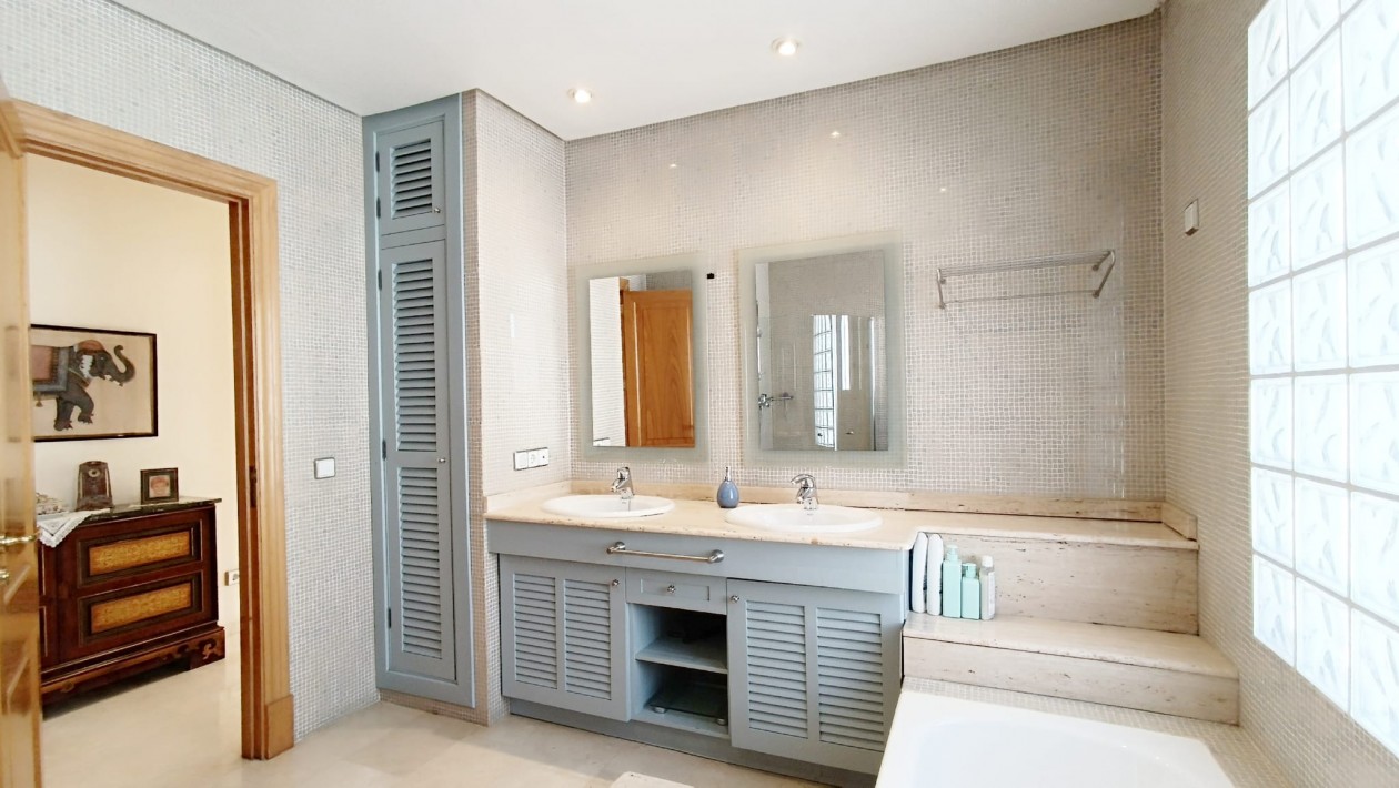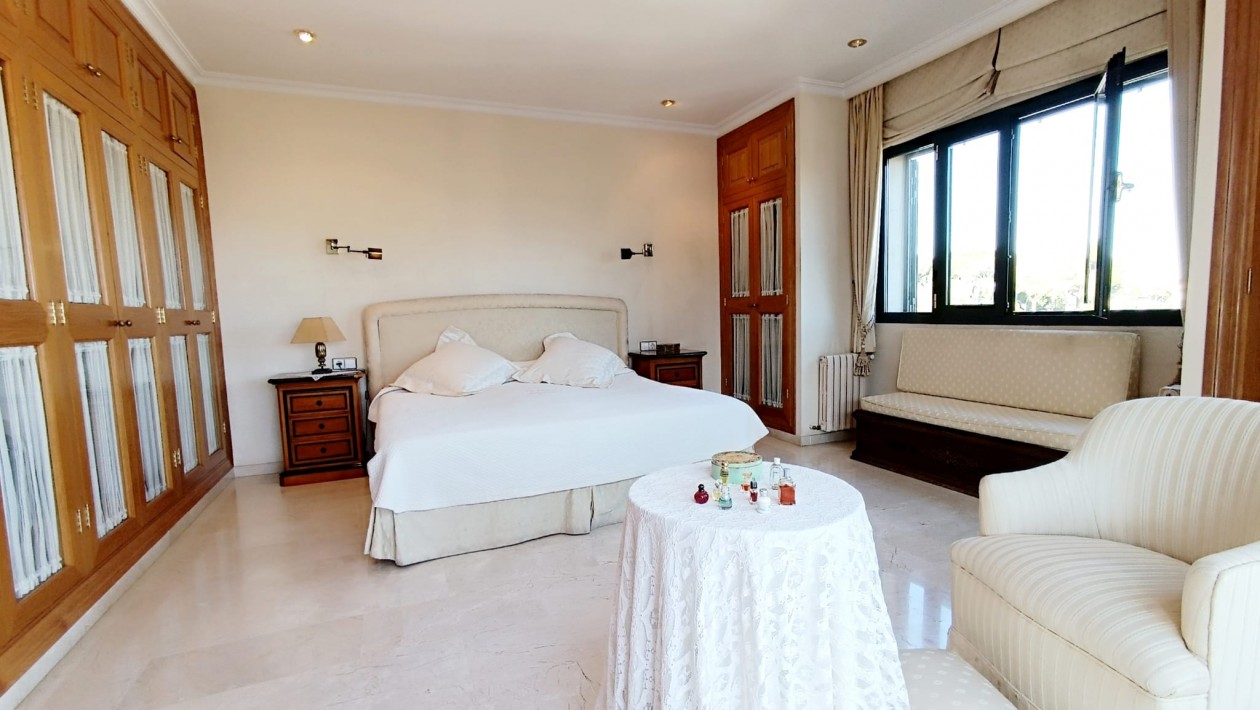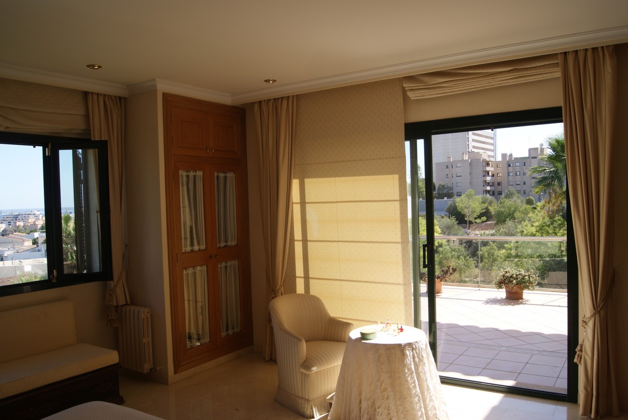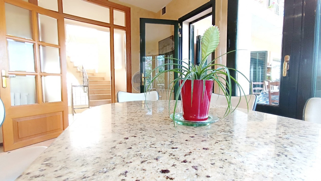 Wir bieten dieses fabelhafte Einfamilienhaus mit privatem Pool zum Verkauf an. Es ist auf die 3 Etagen verteilt. Im Erdgeschoss finden wir ein großes Wohnzimmer mit Kamin, amerikanische Küche, Vorraum und Toilette. Im ersten Stock haben wir 4 Doppelzimmer, 3 Badezimmer (1 en suite) und ein Ankleidezimmer. Von der Terrasse aus haben Sie einen Sitzbereich mit Panoramablick auf die Kathedrale und teilweisem Meerblick. Im Keller finden wir eine riesige 80 m2 große Garage für 4 Autos, eine Arbeitsfläche von 50 m2, die in eine unabhängige Wohnung, ein Badezimmer und einen Abstellraum umgewandelt werden kann. Im ganzen Haus Marmorböden, Allgemeinheizung. Die Lage des Hauses in einer der ruhigsten und anspruchsvollsten Wohngegenden von Palma – Son Dureta. Tolle Verkehrsanbindung, ganz in der Nähe des Golfplatzes, des Club Nautico und des Strandes. Nur 10 - 15 Minuten vom Flughafen entfernt.