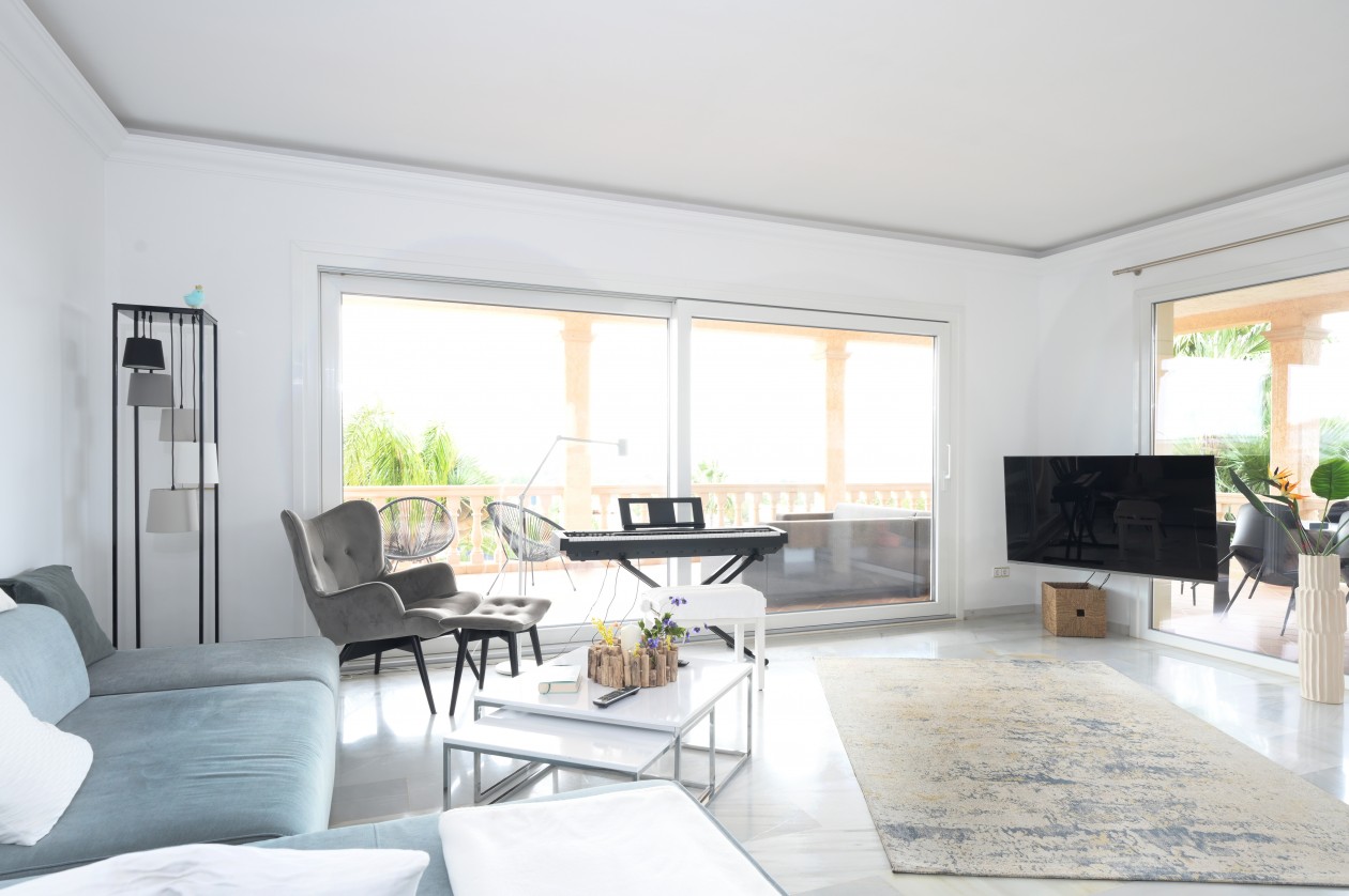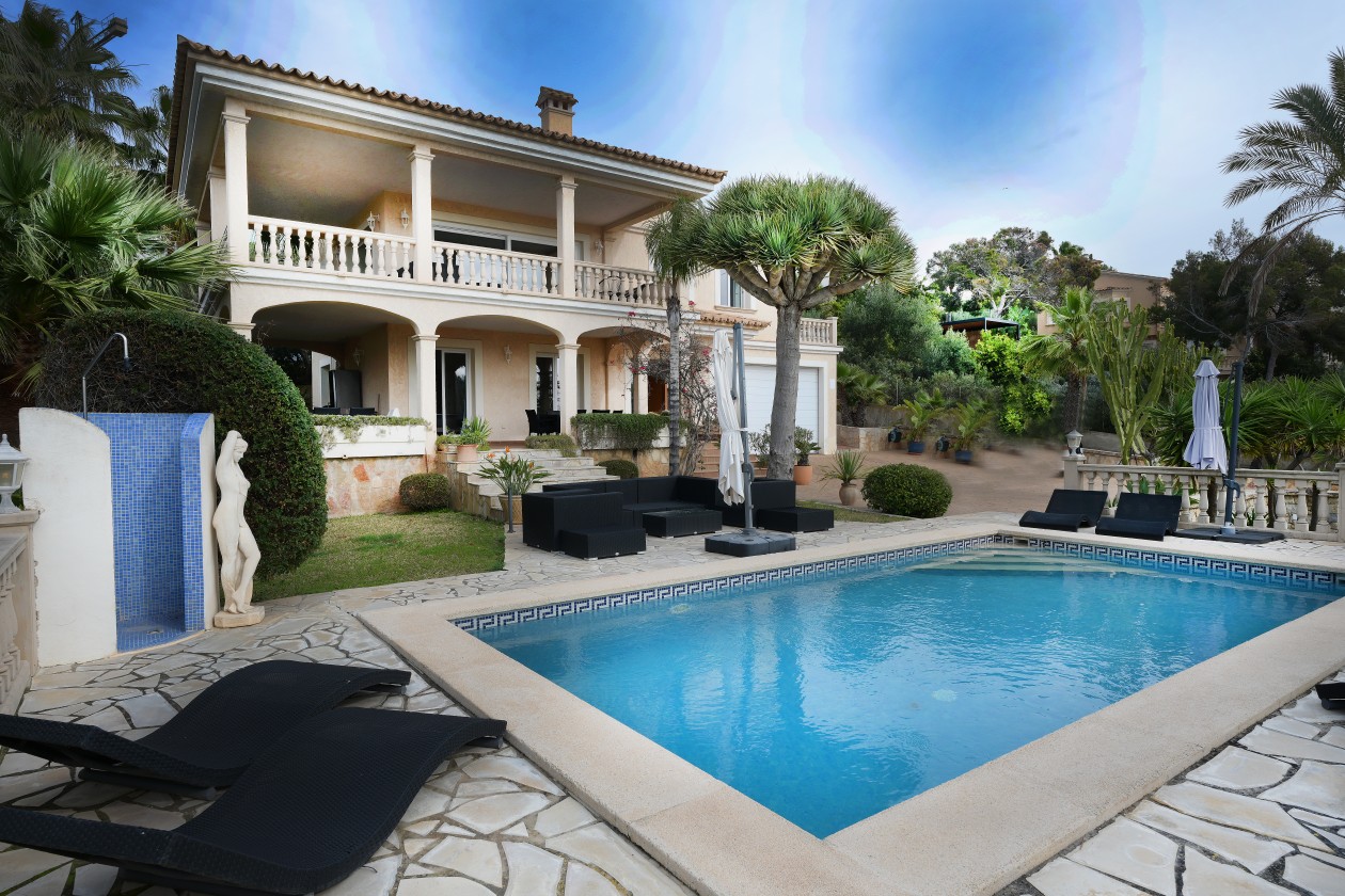 Diese einzigartige Luxusvilla bietet Ihnen alles, was das Herz begehrt. Auf einem großzügigen Grundstück von 1.200 m² erwartet Sie eine Oase der Entspannung und Privatsphäre. Von den verschiedenen offenen und überdachten Terrassen genießen Sie einen unvergleichlichen Blick auf das Meer, während Sie im privaten Salzwasser-Pool schwimmen und die herrliche Aussicht auf sich wirken lassen. Der mediterran gestaltete Garten und eine Doppelgarage vervollständigen das ansprechende Außenensemble.Die Wohnfläche erstreckt sich über großzügige 220 m² und bietet ein Höchstmaß an Komfort und Eleganz. Der offene Grundriss umfasst ein geräumiges Wohn- und Esszimmer, das Ihnen viel Raum für gemeinsame Momente mit Familie und Freunden bietet. Eine separate Küche ermöglicht Ihnen kulinarische Kreativität, während ein gemütliches Lesezimmer einen Rückzugsort für entspannte Stunden bietet. Vier geschmackvoll gestaltete Schlafzimmer, zwei stilvolle Badezimmer und ein Gäste-WC vervollständigen das harmonische Raumkonzept.Die Immobilie besticht durch hochwertige Marmorböden und eine integrierte Klimaanlage, die Ihnen zu jeder Jahreszeit angenehme Temperaturen ermöglicht. Die herausragende Lage in unmittelbarer Nähe zum Meer bietet Ihnen nicht nur traumhafte Strände und Häfen, sondern auch eine Vielzahl von Einkaufsmöglichkeiten, Bars und exquisiten Restaurants, die Ihren Alltag verschönern.Unser erfahrenes SGI-Team steht Ihnen jederzeit zur Verfügung, um einen Besichtigungstermin zu vereinbaren und Ihnen dieses beeindruckende Anwesen persönlich zu präsentieren. Überzeugen Sie sich selbst von diesem einzigartigen Angebot und lassen Sie sich von der Luxusvilla mit Meerblick verzaubern. LAGENova Santa Ponsa ist ein prestigeträchtiger Ort an der Südwestküste von Mallorca und gilt als einer der begehrtesten Wohnorte der Insel. Die exklusive Lage und die atemberaubende Küstenlandschaft machen Nova Santa Ponsa zu einem wahren Juwel.Eines der größten Highlights von Nova Santa Ponsa ist zweifellos der renommierte Santa Ponsa Golfplatz. Diese Weltklasse-Anlage zieht Golfliebhaber aus der ganzen Welt an und bietet eine atemberaubende Kulisse mit Blick auf das azurblaue Mittelmeer. Hier können Sie Ihr Handicap verbessern und das mediterrane Klima in vollen Zügen genießen.Darüber hinaus bietet Nova Santa Ponsa eine ausgezeichnete Infrastruktur mit einer Vielzahl von gehobenen Restaurants, Bars und Geschäften. Sie können hier eine breite Palette von kulinarischen Köstlichkeiten genießen, von traditioneller mediterraner Küche bis hin zu internationalen Gourmetgerichten. Die Einkaufsmöglichkeiten sind ebenfalls erstklassig, mit Boutiquen und Geschäften, die Mode, Schmuck und Designartikel anbieten.Als Immobilienmakler sind wir stolz darauf, Ihnen eine exklusive Auswahl an Luxusimmobilien in Nova Santa Ponsa präsentieren zu können. Ob Sie nach einer modernen Villa mit Meerblick, einer geräumigen Penthouse-Wohnung oder einem eleganten Stadthaus suchen, wir haben die perfekte Immobilie für Sie. Die Architektur in Nova Santa Ponsa zeichnet sich durch anspruchsvolles Design, hochwertige Materialien und moderne Ausstattung aus. Kontaktieren Sie uns noch heute, um mehr über die Immobilien in Nova Santa Ponsa und auf Mallorca zu erfahren. Unser erfahrenes Team steht Ihnen zur Verfügung, um Ihnen bei der Suche nach Ihrer Traumimmobilie in diesem exklusiven Küstenort zu helfen.Viele weitere attraktive Immobilien finden Sie auf www.sgi-mallorca.com