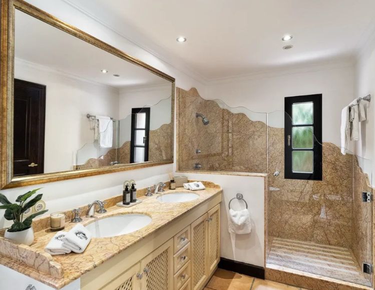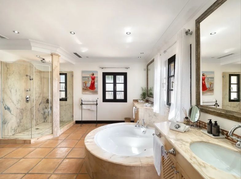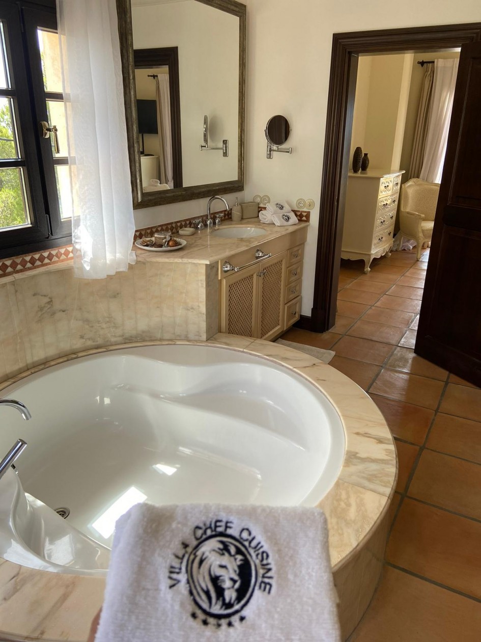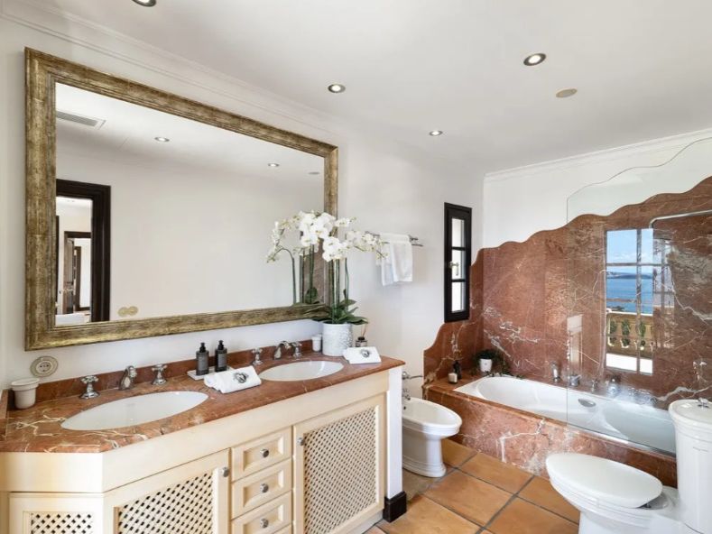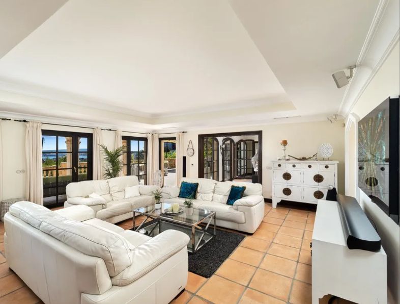 In privilegierter Hanglage von Costa d’en Blanes – einer der exklusivsten Wohnadressen im Südwesten Mallorcas – entfaltet sich diese mediterrane Villa als Oase der Ruhe, des Komforts und der Raffinesse. Auf einem ca. 1.050 m² großen Grundstück gelegen, bietet das Anwesen rund 398 m² Wohnfläche, verteilt auf fünf stilvoll gestaltete Schlafzimmer, jeweils mit eigenem Bad. Klare, zeitlose Architektur, lichtdurchflutete Räume und ein nahtloser Übergang zwischen Innen- und Außenbereich schaffen ein einzigartiges Wohnambiente. Die großzügige Terrasse mit Pool und eleganten Lounge-Bereichen eröffnet einen traumhaften Blick auf das Mittelmeer – perfekt für entspannte Stunden in geschützter Privatsphäre. Costa d’en Blanes steht für höchste Lebensqualität, Sicherheit und Internationalität. In unmittelbarer Nähe befindet sich der renommierte Yachthafen von Puerto Portals – ein Treffpunkt für internationale Gäste, exquisite Gastronomie, stilvolle Boutiquen und mediterranes Flair. Familien profitieren zudem von der Nähe zu internationalen Schulen, wie der angesehenen Agora Portals International School, die nur wenige Minuten entfernt liegt. Auch Palma, der Flughafen und mehrere erstklassige Golfplätze sind in kurzer Zeit erreichbar