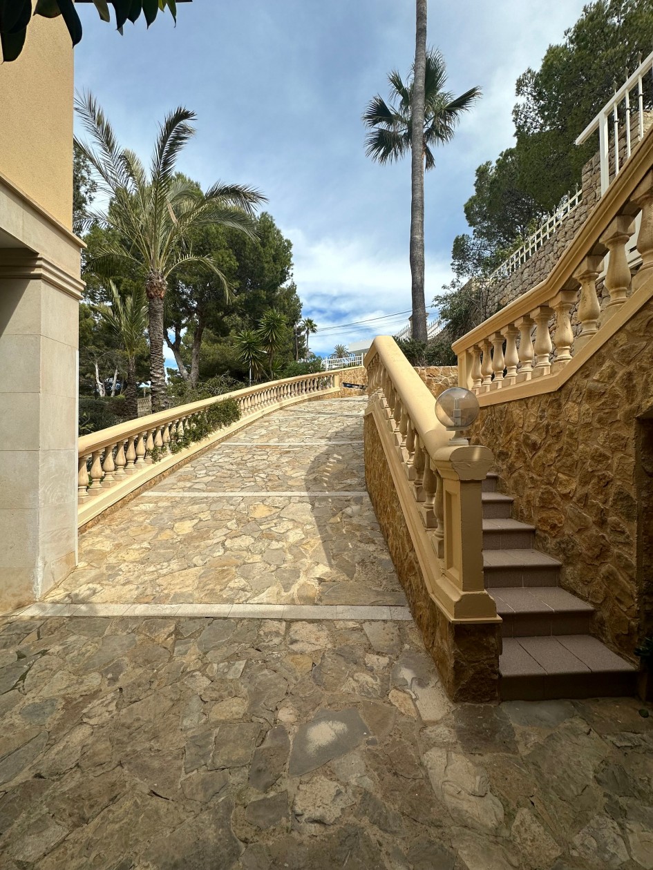 Diese einzigartige mediterrane Villa befindet sich in einer idealen Lage im Südwesten Mallorcas und ist nur einen 2-minütigen Spaziergang direkt vom Garten zum Strand entfernt. Mit einer großzügigen Wohnfläche von 300m² bietet sie Ihnen und Ihrer Familie den perfekten Rückzugsort und eine Wohlfühloase.Die Villa beeindruckt mit 5 geräumigen Schlafzimmern davon 4 Badezimmern en Suite, die Ihnen optimalen Komfort und Privatsphäre bieten. Zusätzlich verfügt sie über 2 Küchen, wovon eine mit einer separaten Einbauküche in der oberen Ebene mitausgestattet ist und Meerblick besitzt.Die weitere Küche befindet sich im Untergeschoss in der Anliegerwohnung.Das Highlight dieser Villa ist die oberen geräumige verglaste Terrasse mit Meerblick. Von hier aus sehen Sie auf ihren Pool, Garten und direkt aufs Meer. Des Weiteren befindet sich hier ein Außengrill, wo man gemütlich mit der Familie und Freunden einen schönen Sonnabend genießen kann.Dank dieser Aufteilung kann die Villa auch als zwei oder sogar 3 separate Wohnungen genutzt werden, wobei jede ihre eigenen Eingänge und Gärten besitzt. Jeder Raum verfügt zudem über eine Terrasse oder einen Balkon, die alle nach Südwesten ausgerichtet sind und ganztägig von der Sonne verwöhnt werden.Auf einem großzügigen Grundstück von 1383m² bietet die Villa einen 9 x 4,5 m großen Außenpool, der perfekt für erfrischende Schwimmeinheiten und entspannte Sonnenbäder ist. Der zusätzliche Waschraum und die schöne Ab-/Auffahrt zur eigenen Garage steht Ihnen in der unteren Ebene zur Verfügung.Diese Villa zeichnet sich durch ihre typisch mediterrane Bauqualität aus und überzeugt mit hochwertigen Materialien und erstklassiger Verarbeitung. Die Zentralölheizung sorgt das ganze Jahr über für angenehme Wärme.Kommen Sie und entdecken Sie dieses außergewöhnliche Juwel an der Costa de la Calma. Vereinbaren Sie noch heute einen Besichtigungstermin und lassen Sie sich von diesem exklusiven Wohntraum verzaubern!
