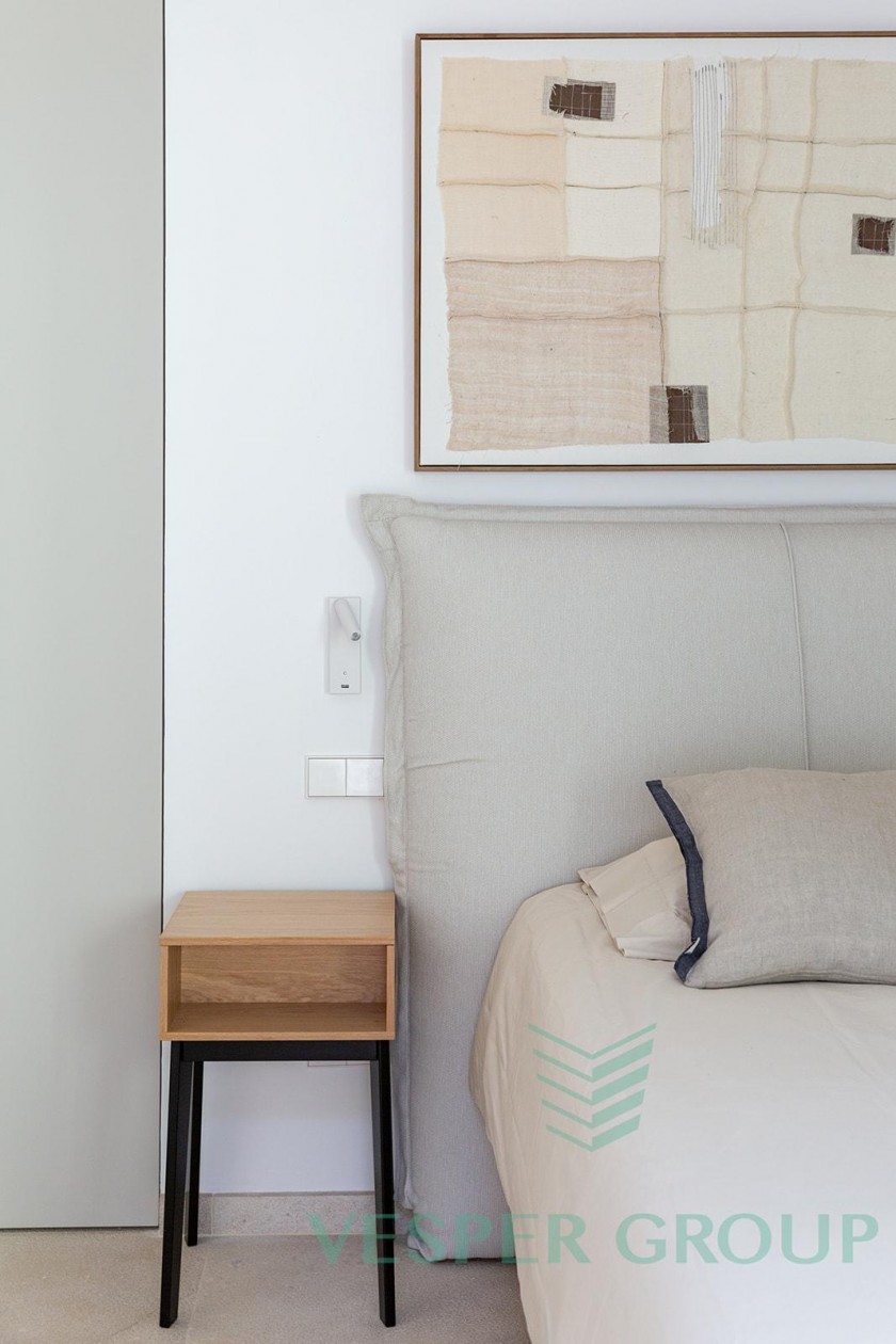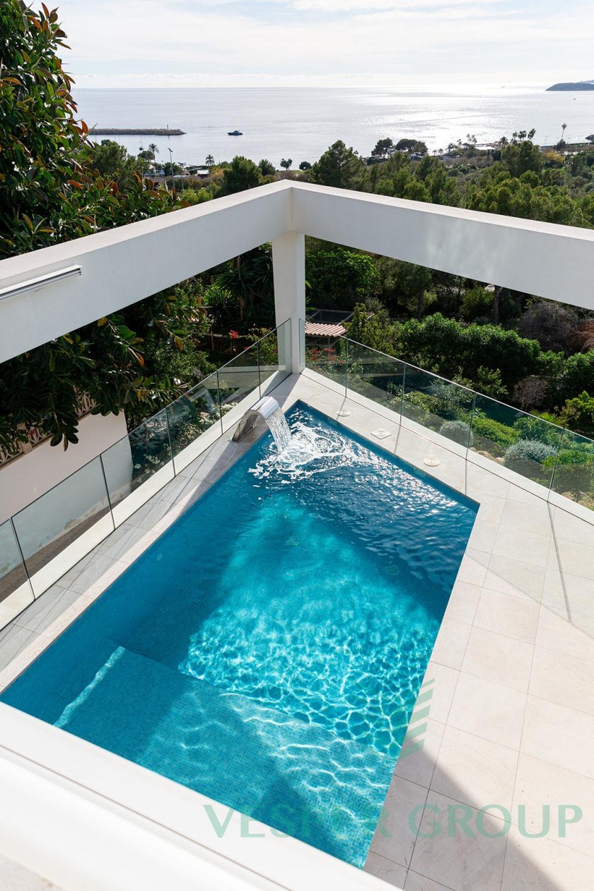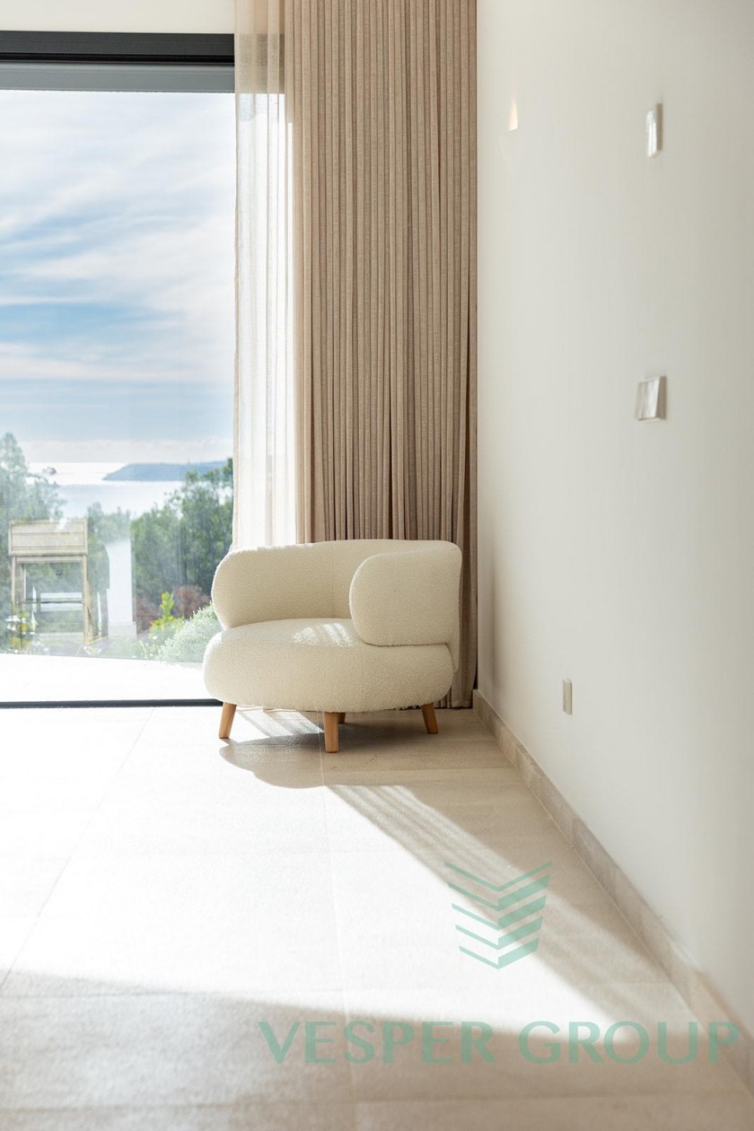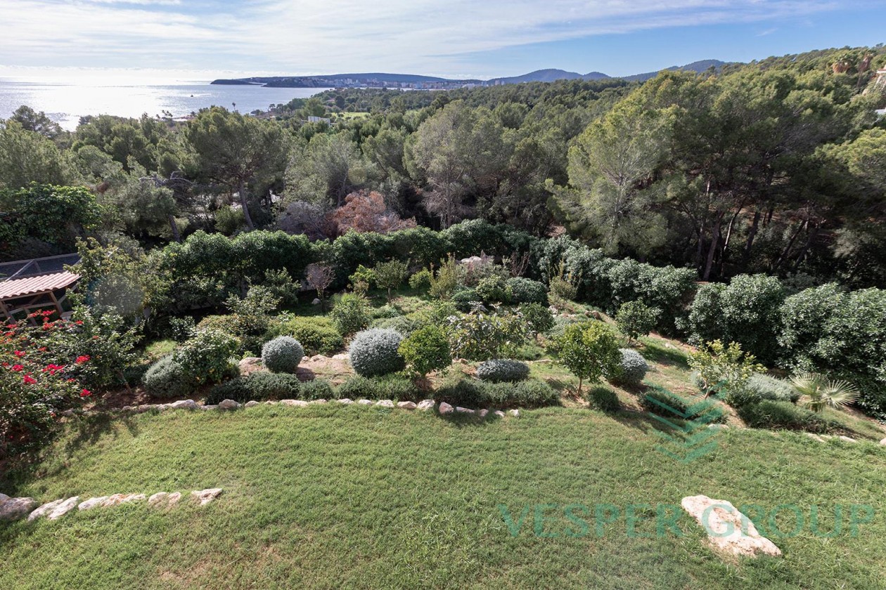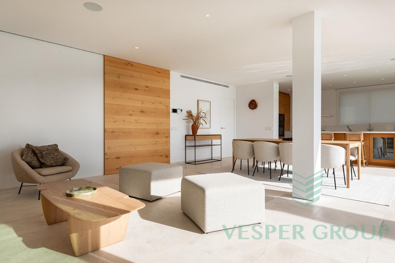 Diese elegante Neubau-Villa in Costa d’en Blanes überzeugt durch zeitgemäße Architektur, lichtdurchflutete Räume und einen fantastischen Meerblick. Sie befindet sich auf einem 1.174 m² großen Grundstück und bietet eine bebaute Fläche von 450 m², verteilt auf zwei Ebenen sowie eine großzügige Dachterrasse. Bereits beim Betreten der Villa öffnet sich durch bodentiefe Fenster der Blick auf das Mittelmeer – ein Panorama, das sich durch den gesamten Wohn- und Essbereich sowie die offene Küche zieht. Auf dieser Eingangsebene befinden sich zudem ein Gästezimmer mit Bad en suite und ein separates Gäste-WC. Im unteren Bereich der Villa liegen drei weitere Schlafzimmer, darunter die großzügige Master-Suite – alle mit eigenen Badezimmern en suite. Insgesamt stehen 4 Schlafzimmer und 4 Bäder zur Verfügung, was ausreichend Platz für Familie und Gäste bietet. Der gepflegte Garten mit großzügiger Rasenfläche eignet sich hervorragend für Kinder oder Haustiere. Ein weiteres Highlight ist die Dachterrasse mit Meerblick, die sich ideal für entspannte Abende oder gesellige Zusammenkünfte eignet. Ausstattung im Überblick: • Grundstücksfläche: 1.174 m² • Bebaute Fläche: 450 m² • 4 Schlafzimmer, 4 Badezimmer • Gäste-WC • Offene Küche mit Meerblick • Bodentiefe Fenster • Dachterrasse mit Panoramablick • Familienfreundlicher Garten • Ruhige und exklusive Wohnlage