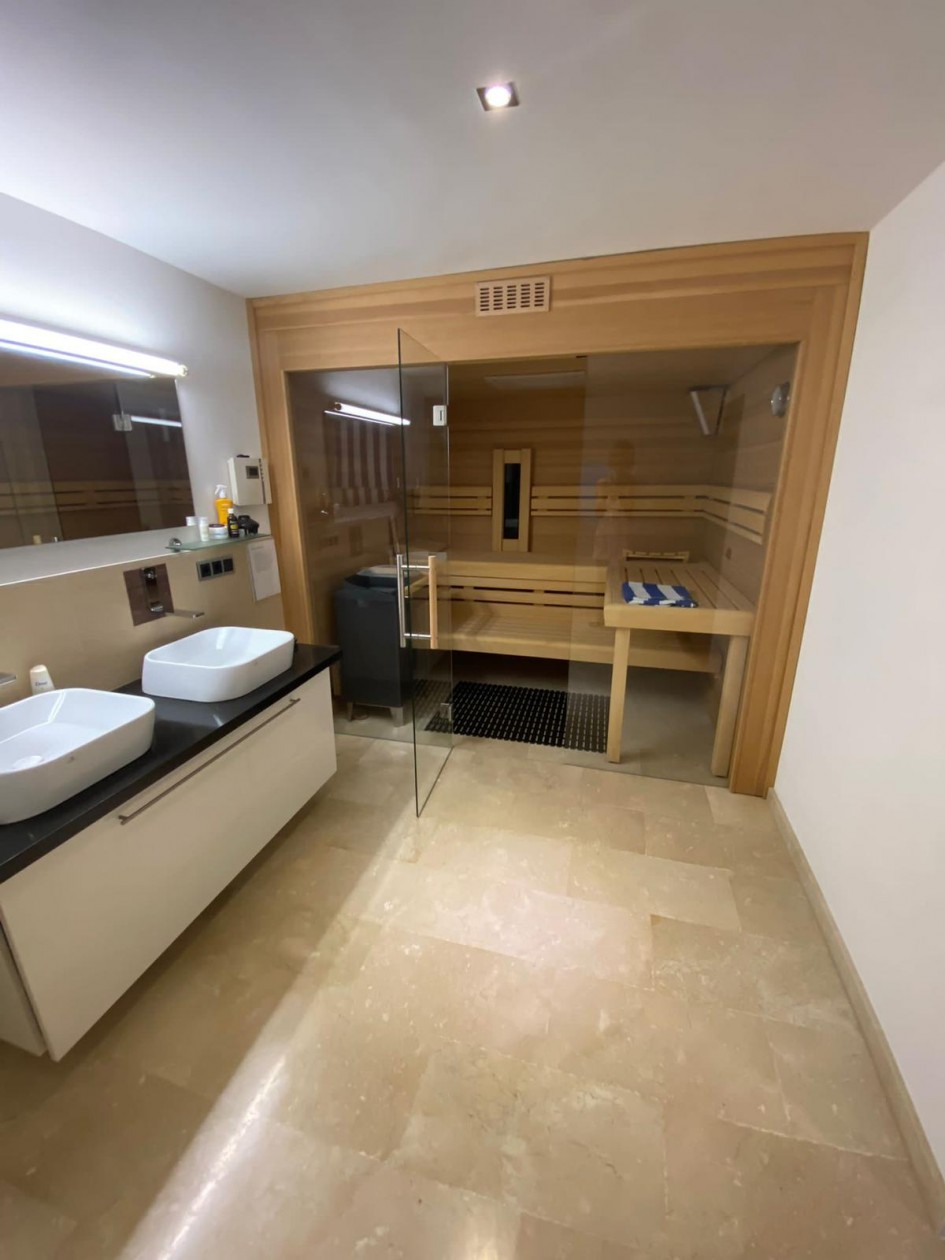 Willkommen zu dieser modernen Villa auf einem Hanggrundstück in einer ruhigen Villenwohnlage, in der Nähe des Yachthafens Port Adriano mit seinem angrenzenden Sandstrand. Von hier aus genießen Sie einen atemberaubenden Panorama-Meerblick. Die Golfplätze der Region, weitere Yachthäfen und das Zentrum von Santa Ponsa mit seiner umfangreichen Infrastruktur sind nur wenige Autominuten entfernt. Dieses renovierte Haus besticht durch großzügige Räume und eine hochwertige, elegante Innenausstattung mit modernster Haustechnik. Auf der Hauptwohnebene im Erdgeschoss erwartet Sie neben dem geräumigen Wohn-/Esszimmer mit offener Luxusküche eine zweite Küche, das Hauptschlafzimmer mit eigenem Bad, ein Büro sowie ein weiteres Badezimmer. In der unteren Ebene finden Sie ein Gästeapartment mit einem Schlafzimmer und eigenem Bad (derzeit als Fitnessraum genutzt), zwei weitere Schlafzimmer mit jeweils eigenem Bad und einer Sauna en Suite sowie eine Doppelgarage. Zudem sorgt eine Fußbodenheizung sowohl im oberen als auch im unteren Bereich für angenehme Wärme. Der Außenbereich der Villa bietet einladende freie und überdachte Terrassen mit einem Salzwasserpool sowie einen automatisch bewässerten Garten. Das Grundstück umfasst großzügige 900 Quadratmeter. Diese moderne Villa vereint Komfort, Luxus und eine erstklassige Lage. Überzeugen Sie sich selbst von ihrem einzigartigen Charme und vereinbaren Sie noch heute eine Besichtigung.