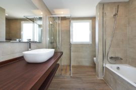 Im Obergeschoss liegen zwei weitere Doppelschlafzimmer, jeweils mit eigenem Bad, sowie eine sonnige Terrasse mit beeindruckendem Blick über den Golfplatz.
