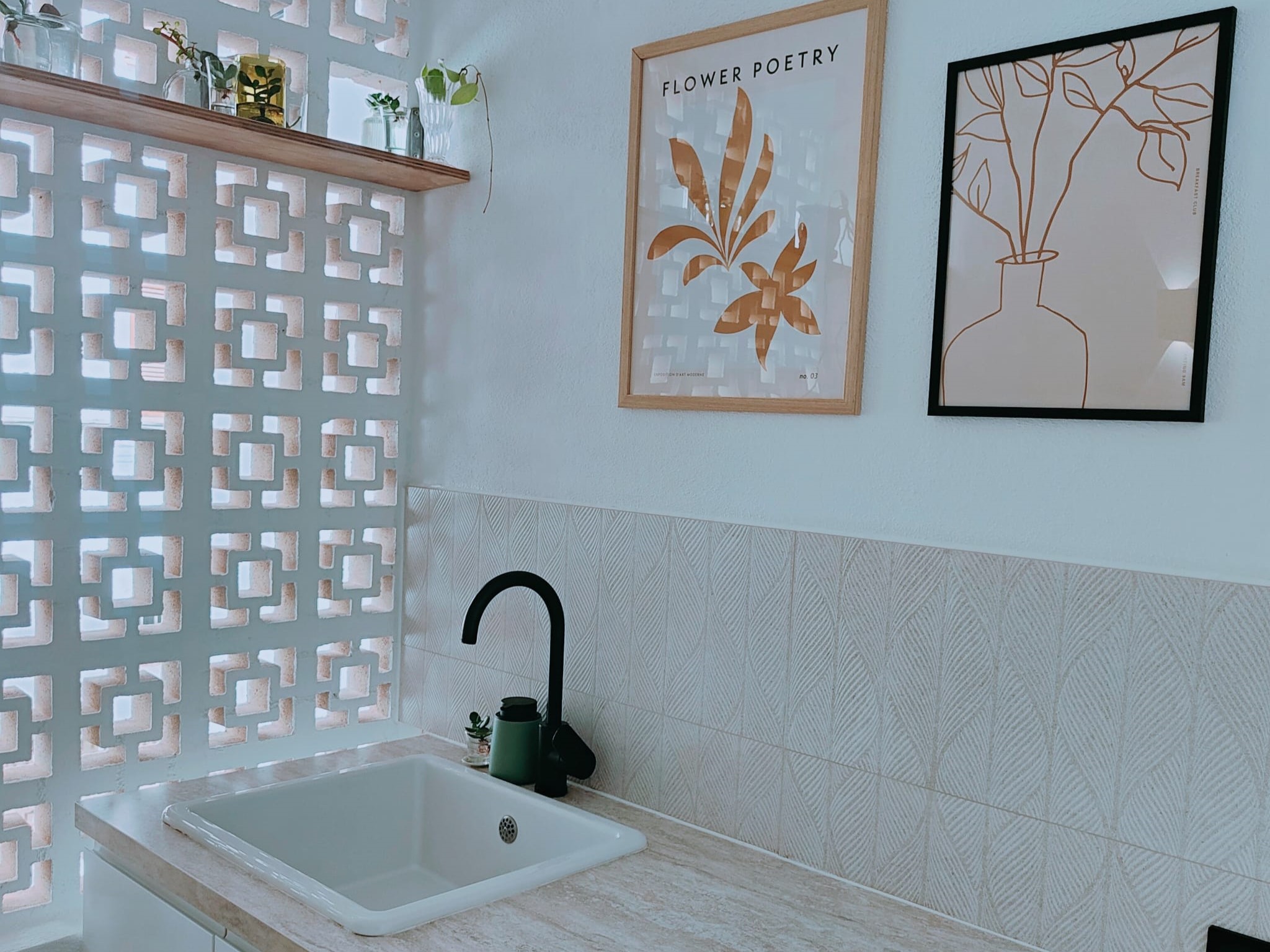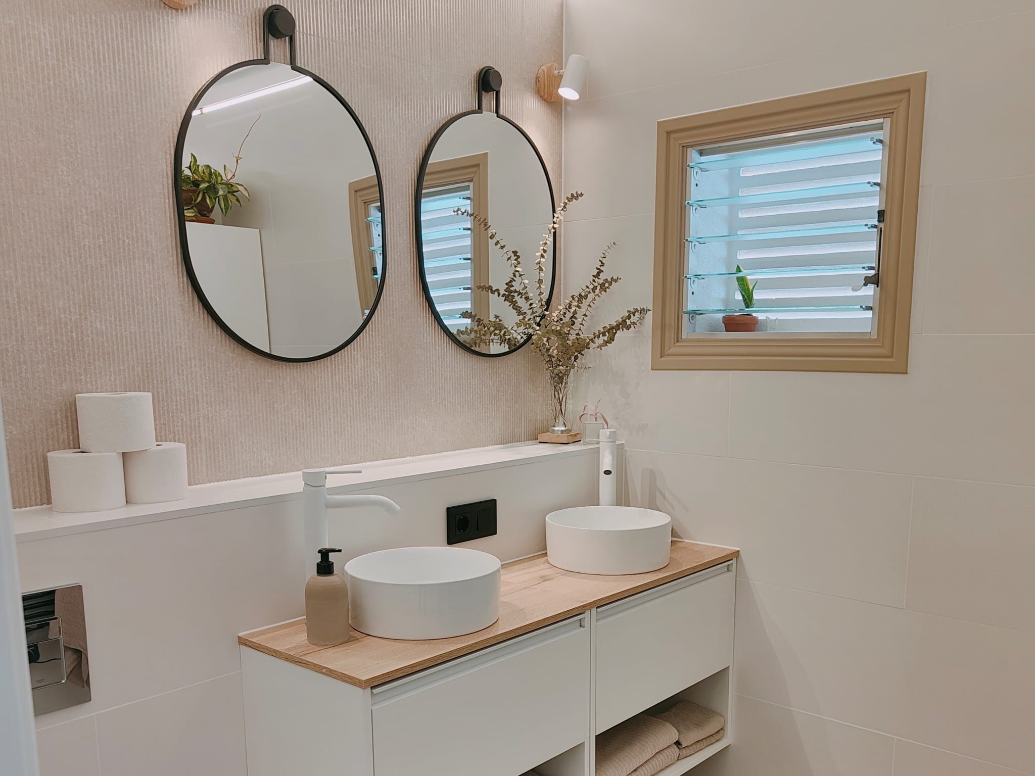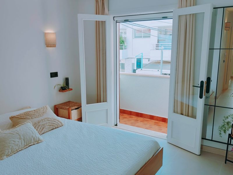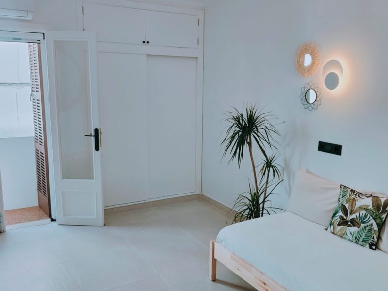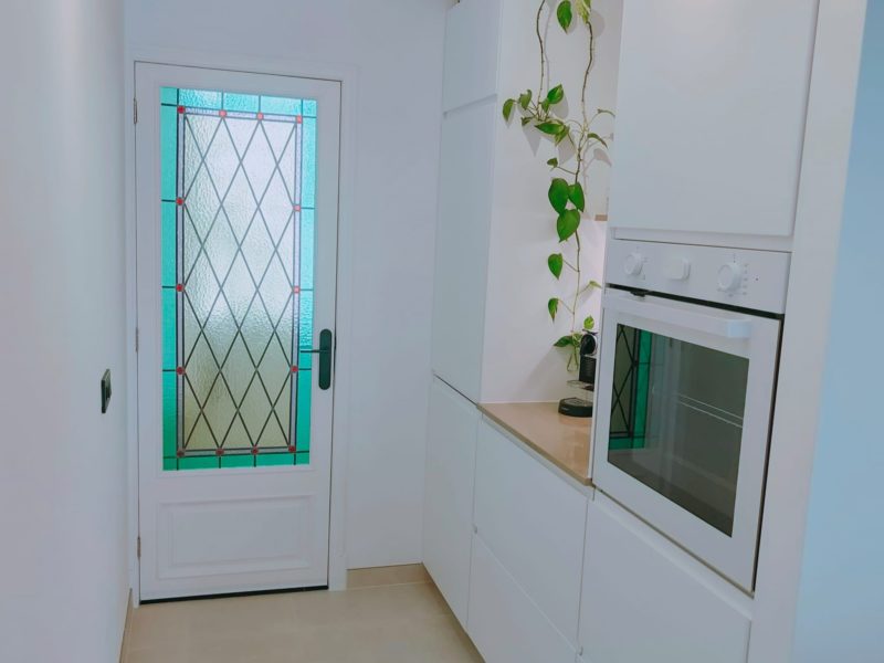 Die Wohnung wurde 2025 komplett kernsaniert, inkl. neuer Elektrik. Originale Buntglastüren sorgen für mallorquinischen Charme.