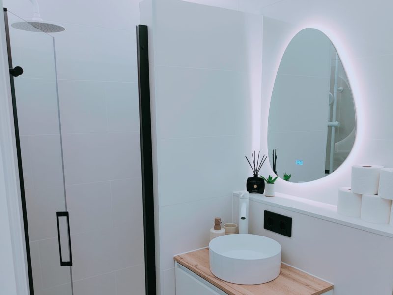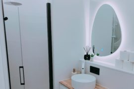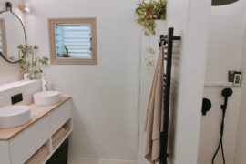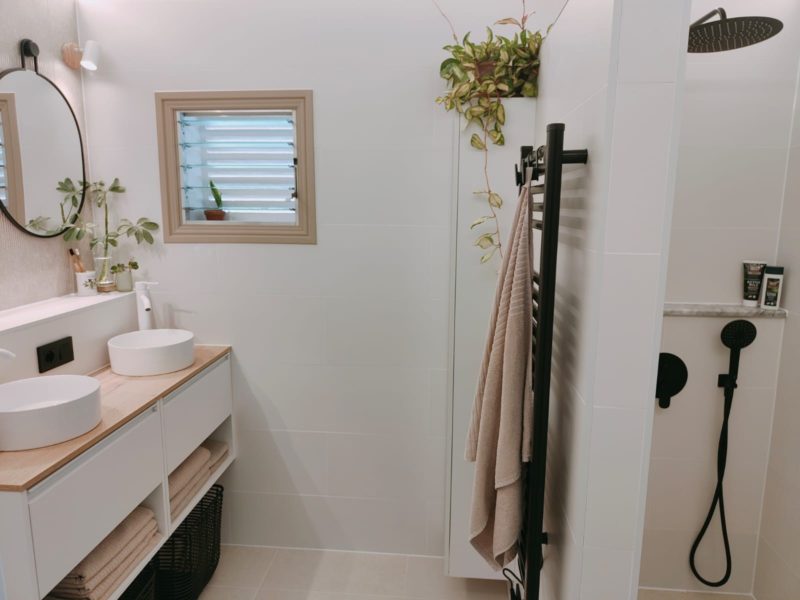 • 2 moderne Bäder (eins en suite) mit bodengleichen Duschen, Fenster, Designer-Heizkörper