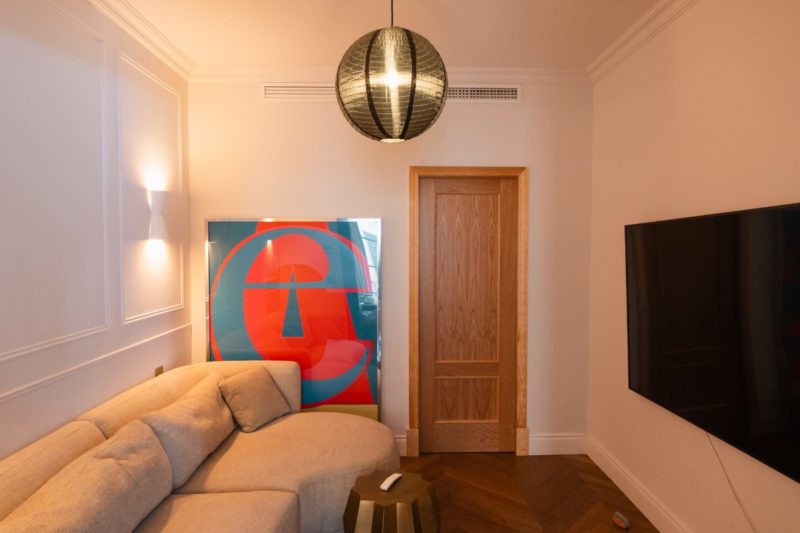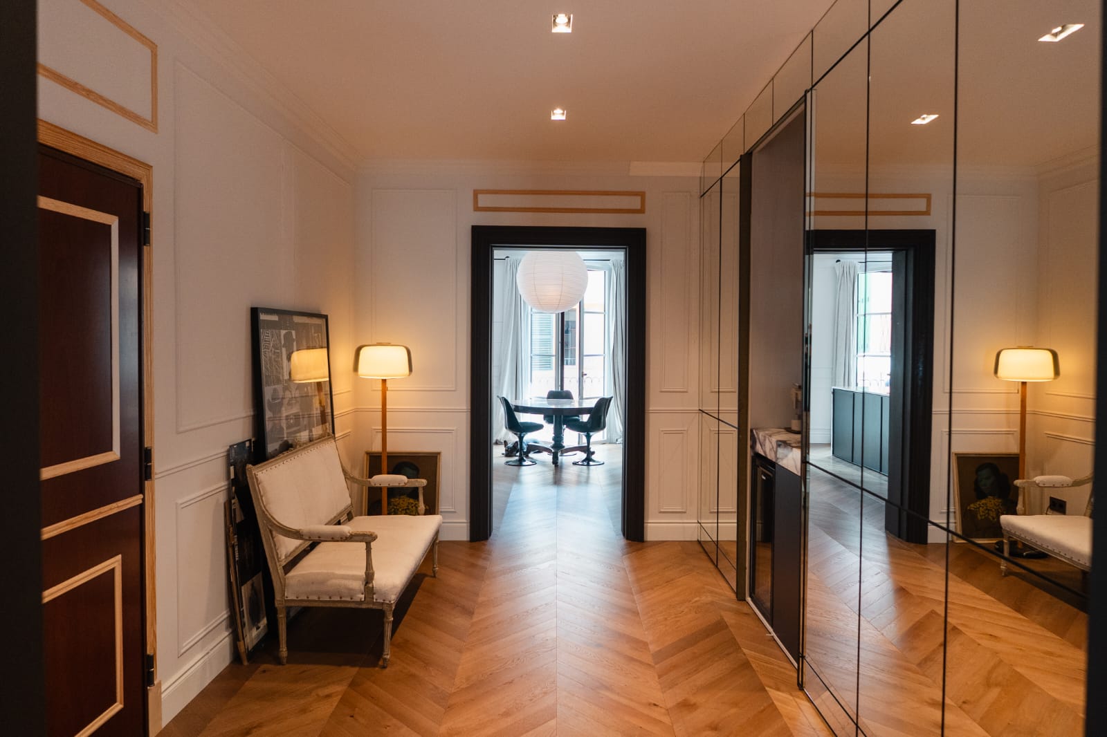 Die 160 m² große Wohnung befindet sich im 3. Stock eines historischen Gebäudes, in dem die Gemeinde bereits für den Einbau eines Aufzugs gestimmt hat. Bei der umfassenden Renovierung im Jahr 2025 wurde jedes Detail erneuert: Eichenparkett im Fischgrätmuster, neue Sanitär- und Elektroinstallationen, unabhängige Klimaanlage in jedem Zimmer und hochwertige Oberflächen.